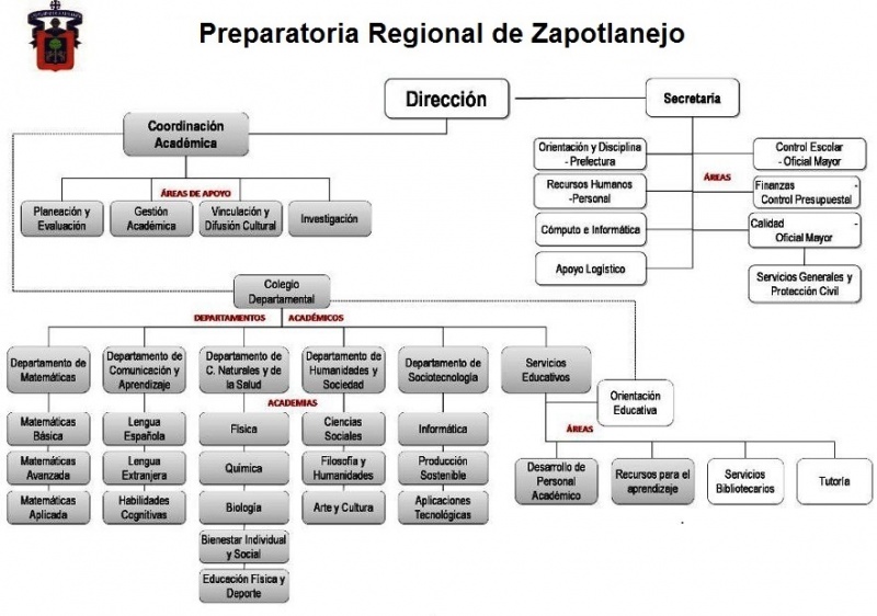 La Biblioteca de la Escuela Preparatoria Regional de Zapotlanejo pertenece al Sistema de Educación Media Superior de la Universidad de Guadalajara, y forma parte de la Red de Bibliotecas de la misma Universidad. Ubicación en el organigrama: ![]() |